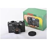 compact camera with built-in rangefinder, half-automatic and manuell settings, with Revuenon lens 40mm f1.7 in Copal shutter, cap, UV filter and makers box, in fine condition and good working order (B+)
