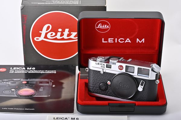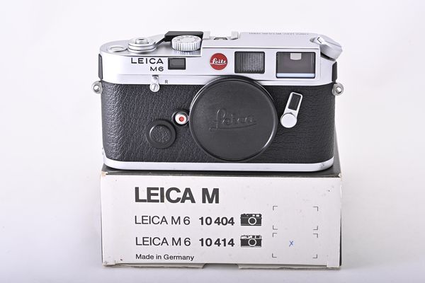 classic Leica M6 body in silver chrome finsih, made by Ernst Leitz Wetzlar GMBH c1988, MINT (A-) in makers box, with cap, strap and instructions