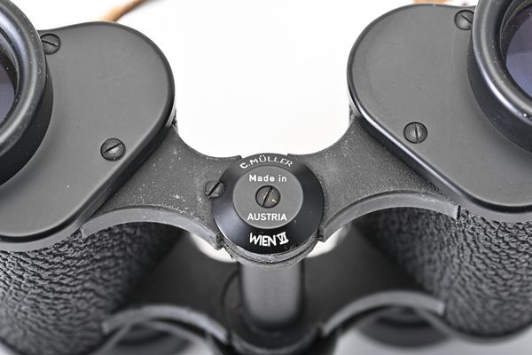 high-quality Binoculars made in Austria. good shape (B), clear optics, with leather strap