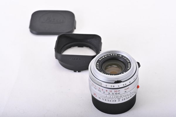 Leica Summicron-M 2/35 ASPH. 11882, 6-bit, silver chrome finish, in good shape (B+), with lens hood 12526 and caps