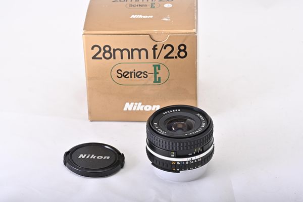 Nikon lens series E 28mm f/2.8, 2nd version with caps, instructions and maker box, as good as new (A-)