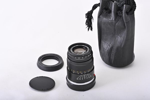 Leitz Wetzlar Elmar-C 1:4/90mm for Leica M cameras, with caps, case and rubber lens hood, in near mint condition (A-)