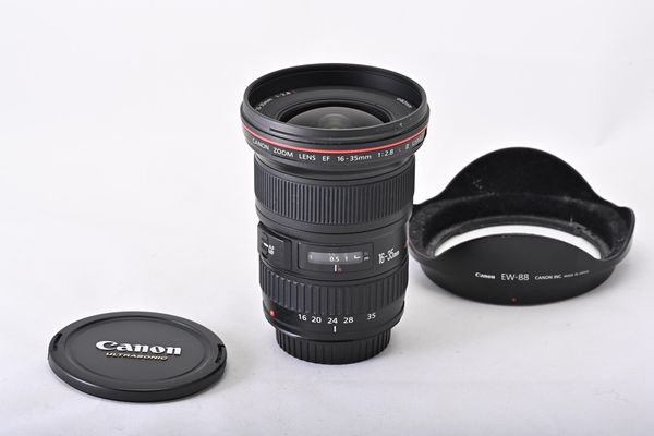 Canon EF zoom lens 16-35mm f2.8 L II USM, with caps and lens hood EW-88, in near mint condition (B/A)