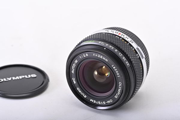 OM-System Zuiko MC Auto-W lens 28mm 1:2.8, in near mint condition (A/B), clean lenses, smooth focusing, with caps