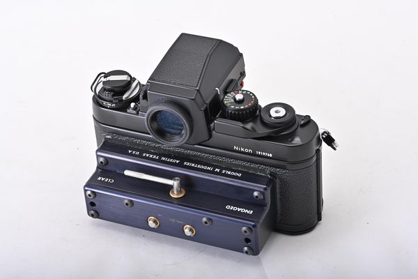 Nikon F3 HP with a specially modified Nikon back, made by Double M Industries Austin, Texas U.S.A. for precise film transport, all in near mint condition (A/B) and good working order