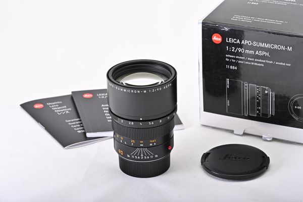 Leica Apo-Summicron-M 2/90 ASPH., black anodized finsih 11884, 6-Bit, with caps, instructions, warranty card and makers box, in mint condition (A-)